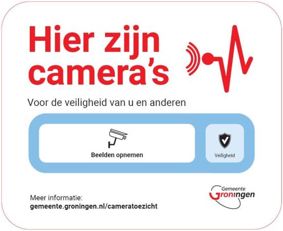 De zwartwitte borden die er eerder hingen waren simpeler: er stond alleen op dat er camerabewaking was met een illustratie van een camera. De nieuwe borden vallen meer op. De tekst ‘Hier zijn camera’s’ is met duidelijke rode letters aangegeven, en daaronder staat ‘Voor de veiligheid van u en anderen’. Verder staat er ook een link naar de website van de gemeente waar meer informatie staat over het cameratoezicht.