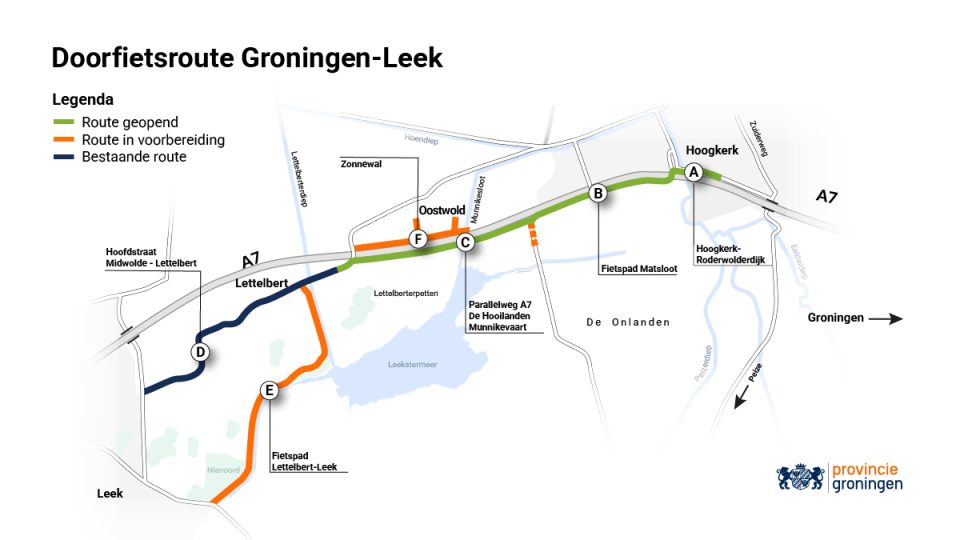 Als alles volgens plan verloopt zijn de werkzaamheden in het voorjaar van 2026 klaar. De officiële opening staat dan ook volgend jaar op de planning. Dan is het laatste deel tussen Nienoord en Lettelbert langs het Leekster Hoofddiep afgerond.