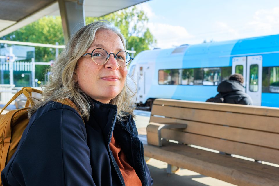 “Ik stap zo op de trein naar Veenwouden, richting Leeuwarden. Ik reis elke dag met deze trein, want ik werk hier bij de gemeente aan het Harmbuiterplein. Sinds het nieuwe Hoofdstation er is, kan ik een rechtstreekse trein nemen en zo’n beetje voor de deur uitstappen. Het grootste voordeel? Dat ik kan blijven zitten, en niet meer hoef uit te stappen op het Hoofdstation. En ik heb laatst uitgerekend hoeveel het me scheelt per rit: toch 7 a 8 minuten. Toch fijn.”