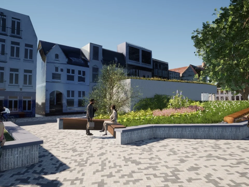 Op het vernieuwde Damsterplein wordt regenwater beter opgevangen en gebruikt. Het water kan via het groen de grond in zakken en wordt deels hergebruikt om planten water te geven. Tussen de parkeergarage en het restaurant komt een halfverharding, vergelijkbaar met die op de Grote Markt. Zo kan regenwater beter weglopen en wordt het riool minder belast. Tegelijk ontstaat er een prettige, koele plek met meer schaduw onder de bestaande bomen.